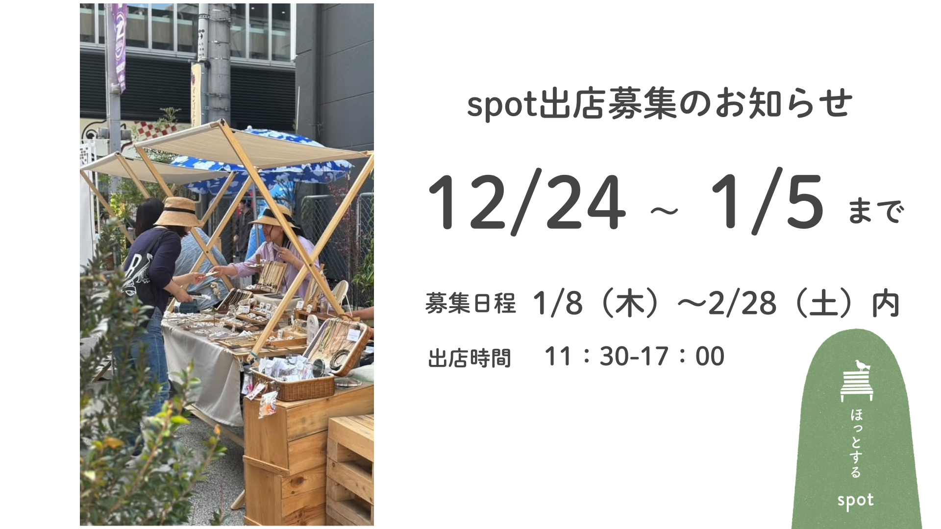 1/8(木)~2/28(土)内の出店可能日11:30-17:00