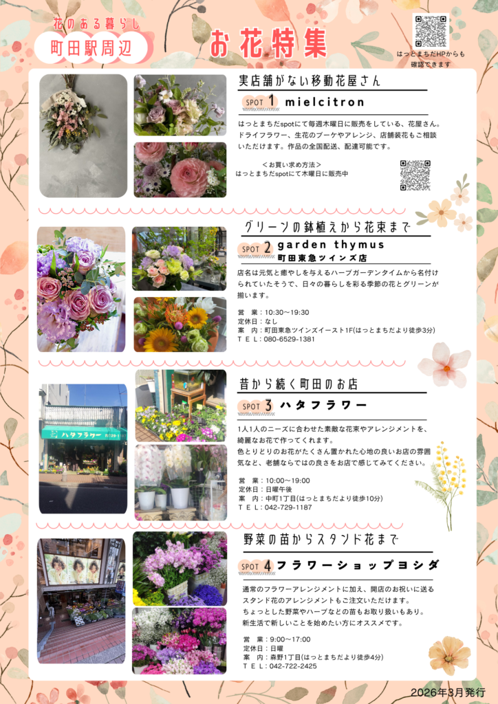 町田には、季節の花を楽しめる公園や、お部屋を彩るお花のお店、春らしいギフトが見つかるお店がたくさんあります💐🎁