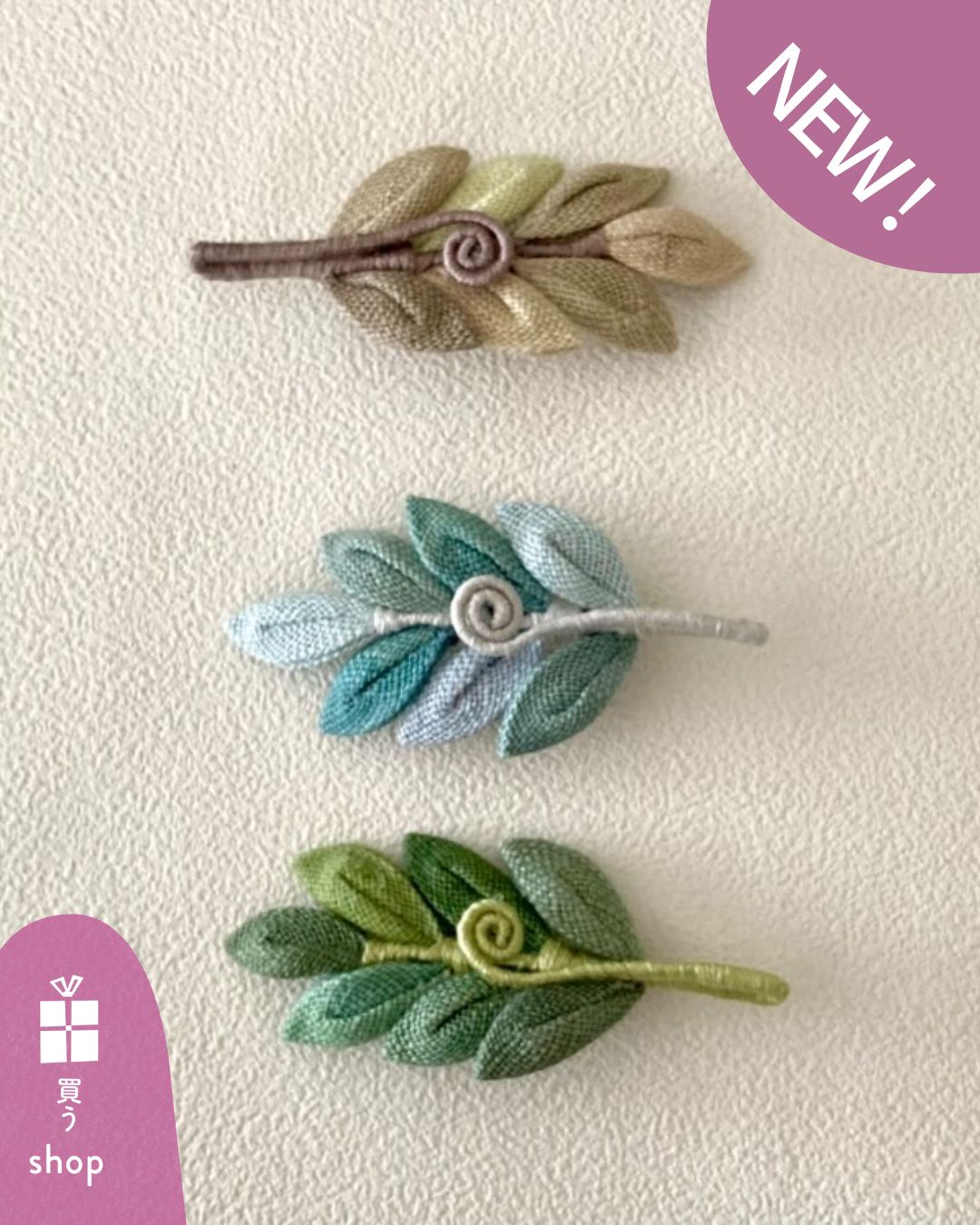 育てた草木で染めた布などを用い、つまみ細工の技法で、日常を楽しむ小さな飾り物をお作りしています。