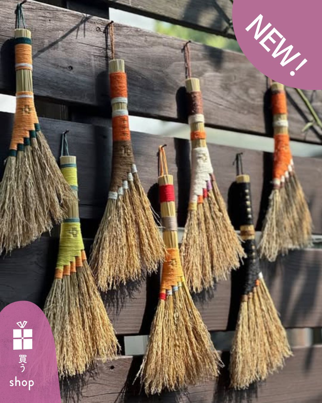 箒はカラフルな糸をあしらい、インテリアとして飾っても楽しめる一品。