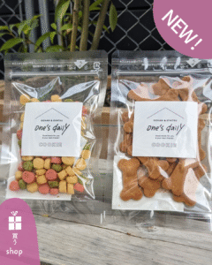 通常「雑貨」である犬用おやつを無添加で安心安全な「食品」として提供されています。